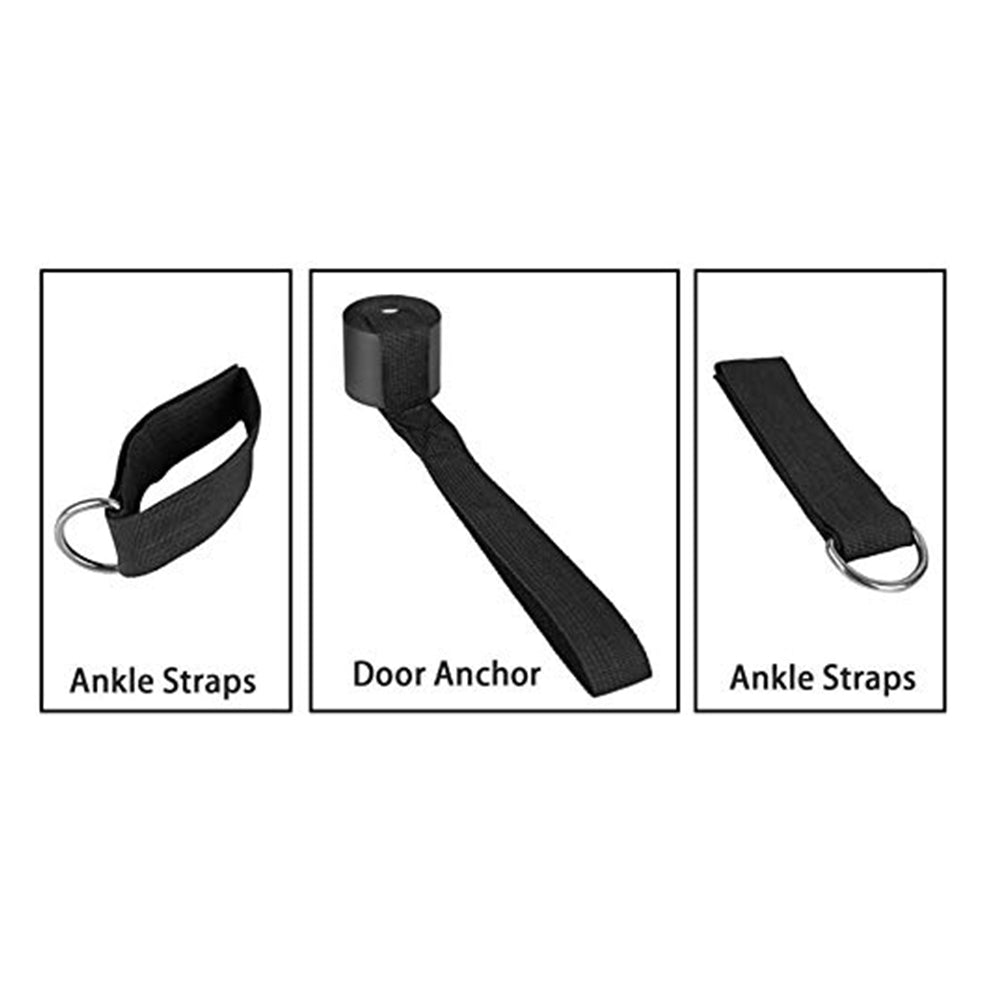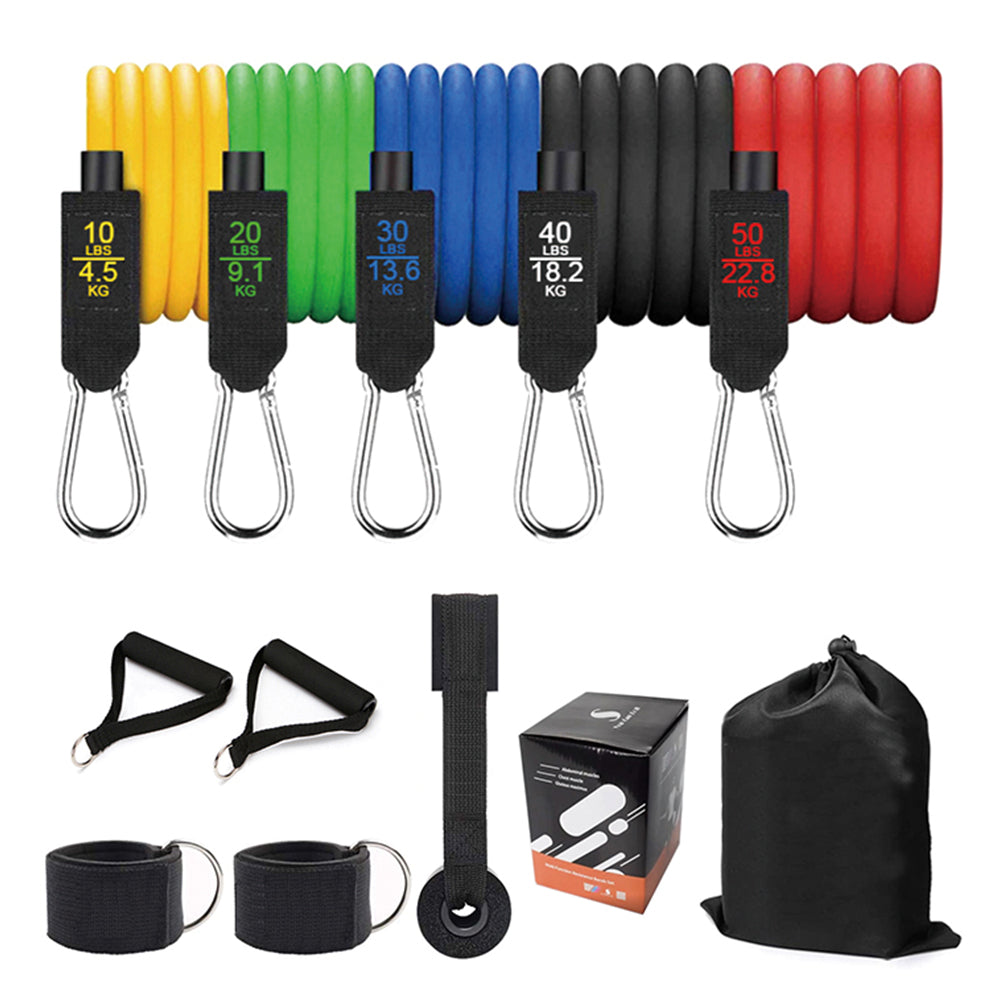 - Package Include: 5 x Resistance bands 5 x Core bands, 2 x Handles, 1 x Door Anchor, 1 x Carry bag, 2 x Ankle straps.