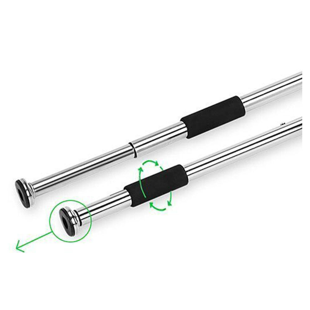Improve your upper body strength and stamina with our Adjustable Door Gym Bar. Made with strong heavy-duty steel and cushioned foam grips, this portable bar offers 5 different workout options, including upper body stretches and full body exercises. Don't settle for a pull-up bar without proper grip - our foam padding ensures a secure hold for effective workouts.