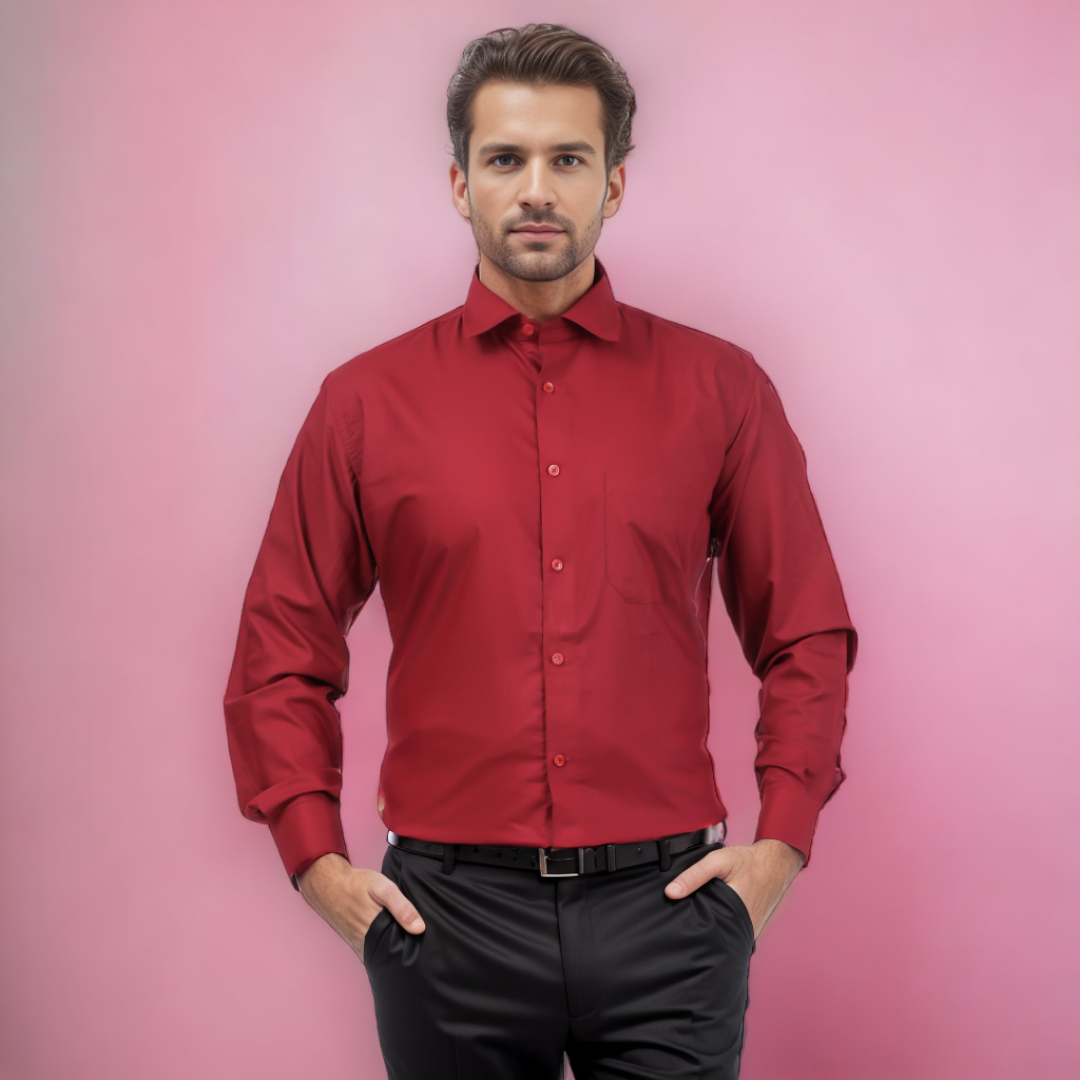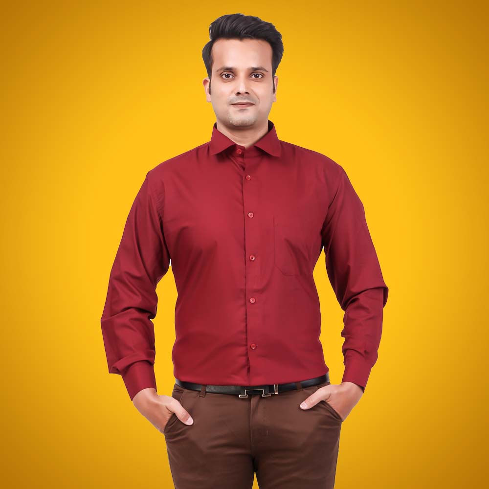Men's Formal Shirt Blend Cotton Regular Fit Maroon