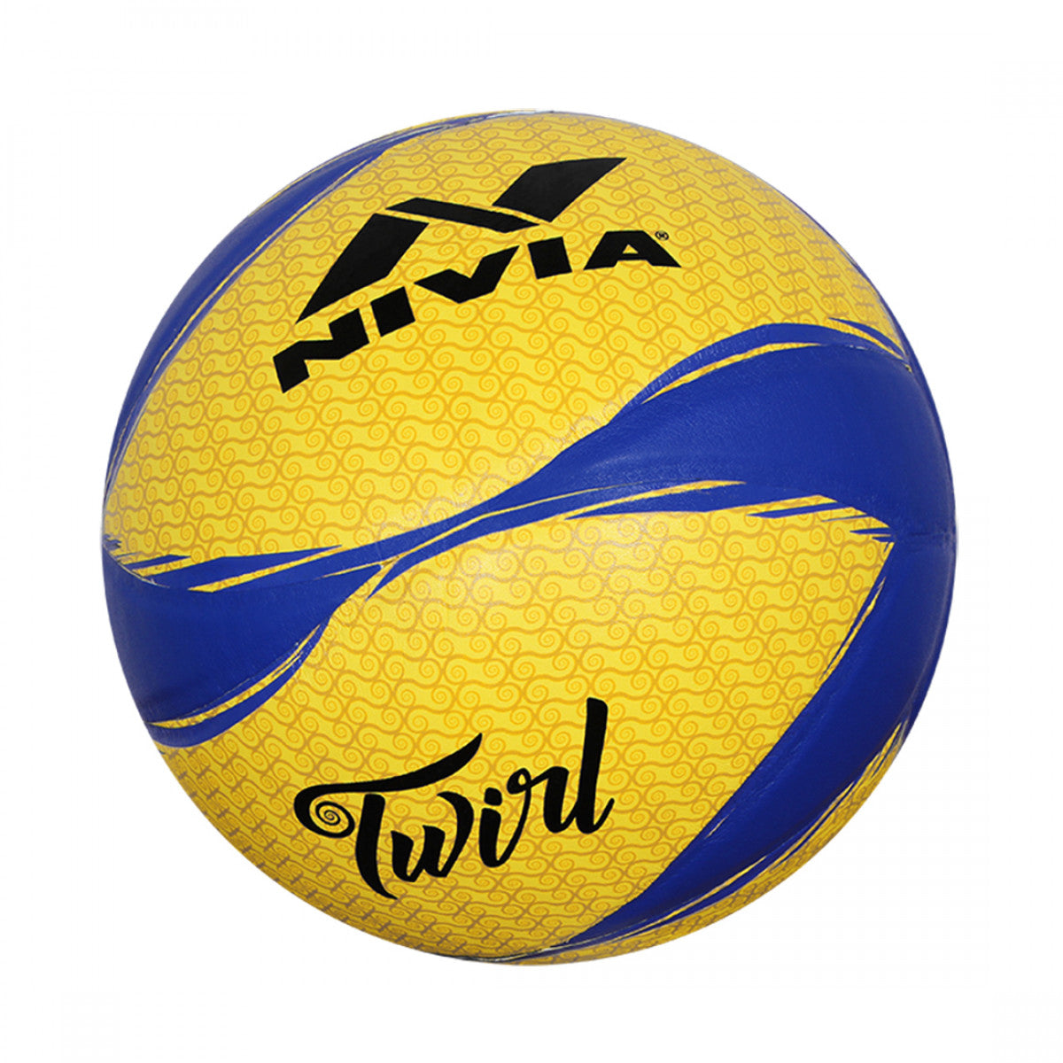 NIVIA Twirl Next Generation Volleyball. Perfect shape for better control and smashing. Soft feel wrinkle free genuine leather. Recommended for both indoor and outdoor play. Fine hand pasted panels. Official Match Ball for major events throughout India. Excels in all-weather condition.