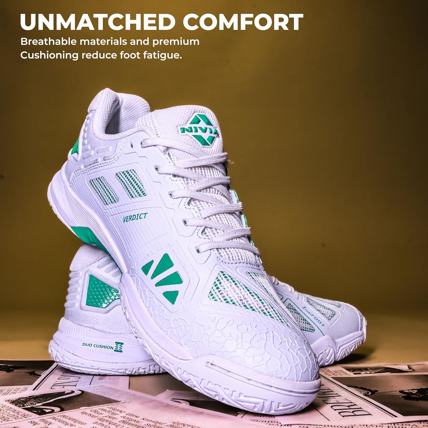 - NIVIA VERDICT 2.0 BADMINTON SHOE is built for players who demand precision, agility, and superior foot support on the court. Designed for badminton and other fast-paced indoor sports, this non-marking shoe enhances speed, grip, and durability—giving you the competitive edge you need. With advanced cushioning, a high-traction outsole, and a precision fit, the VERDICT 2.0 ensures you stay light on your feet while delivering powerful movements with confidence.