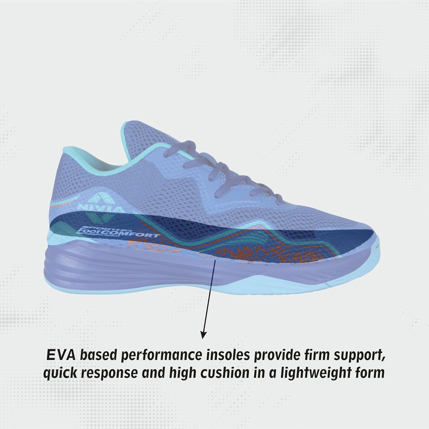 Designed for basketball players seeking performance and comfort, the Nivia Warrior 2.0 features a breathable mesh and TPU film upper that ensures ventilation and durability. Its lightweight phylon, rubber, and TPU shank sole offer excellent traction and support during quick movements. The moulded EVA insole enhances cushioning, while the lace closure secures a snug fit. With standard ankle height for flexibility and stable support, these royal blue shoes combine functionality with style for the serious athlete. Fully original and engineered for the game, the Nivia Warrior 2.0 is a reliable choice on the court.