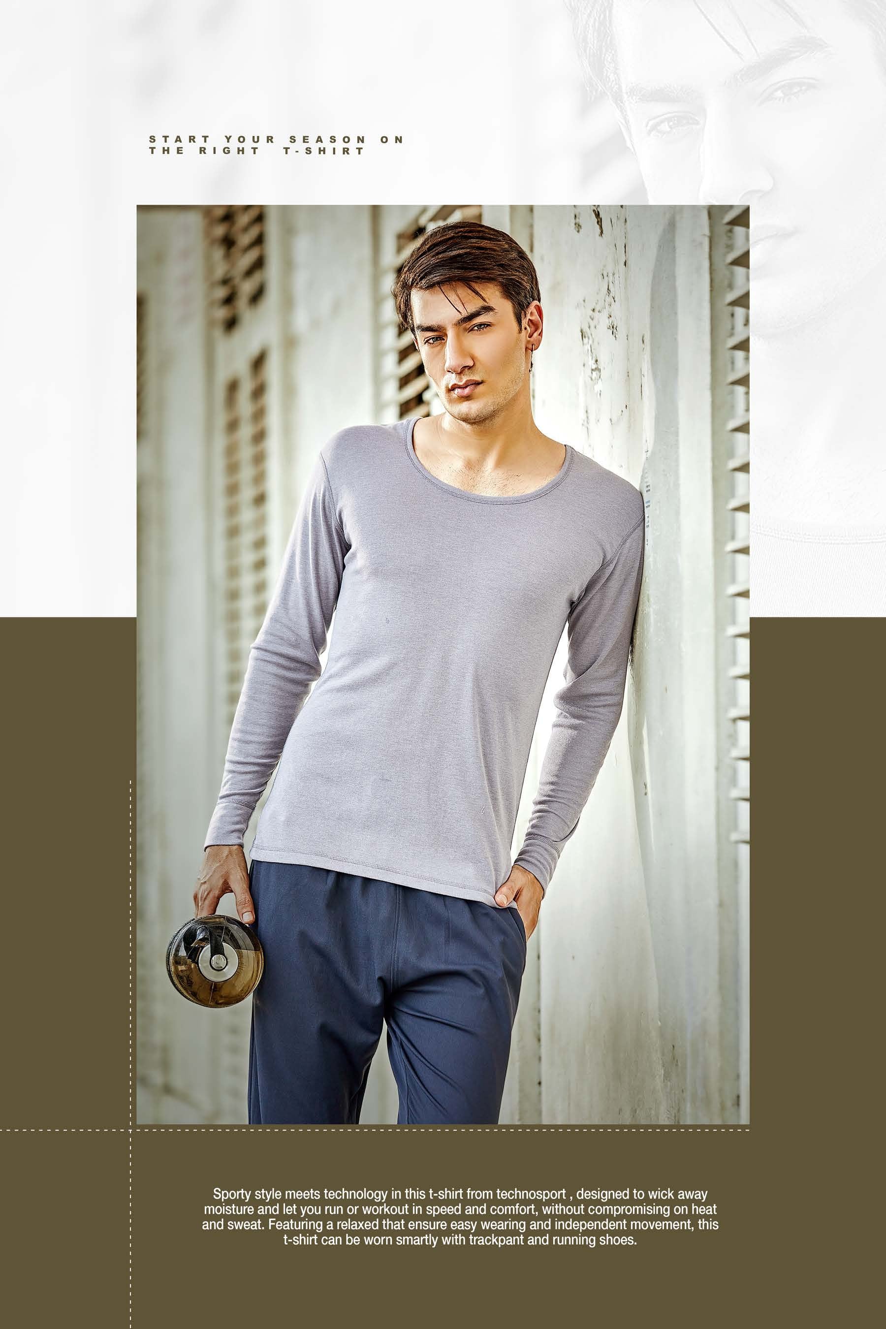 TechnoSport Crew Neck Full Sleeve Thermal Wear Body Warmer for Men OR-58 (Silver Grey)