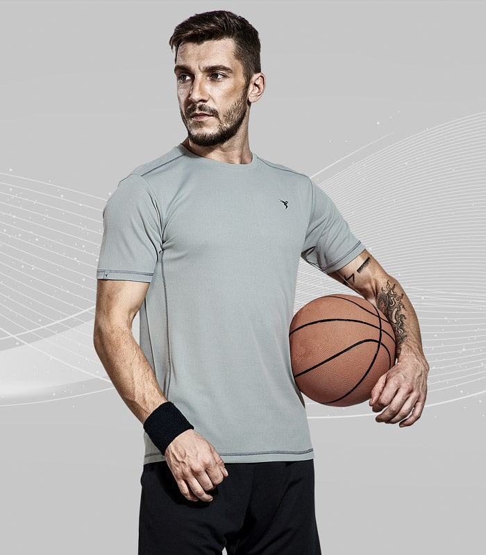 TechnoSport Crew Neck Half Sleeve Dry Fit T Shirt for Men OR-10 (Light Grey)
