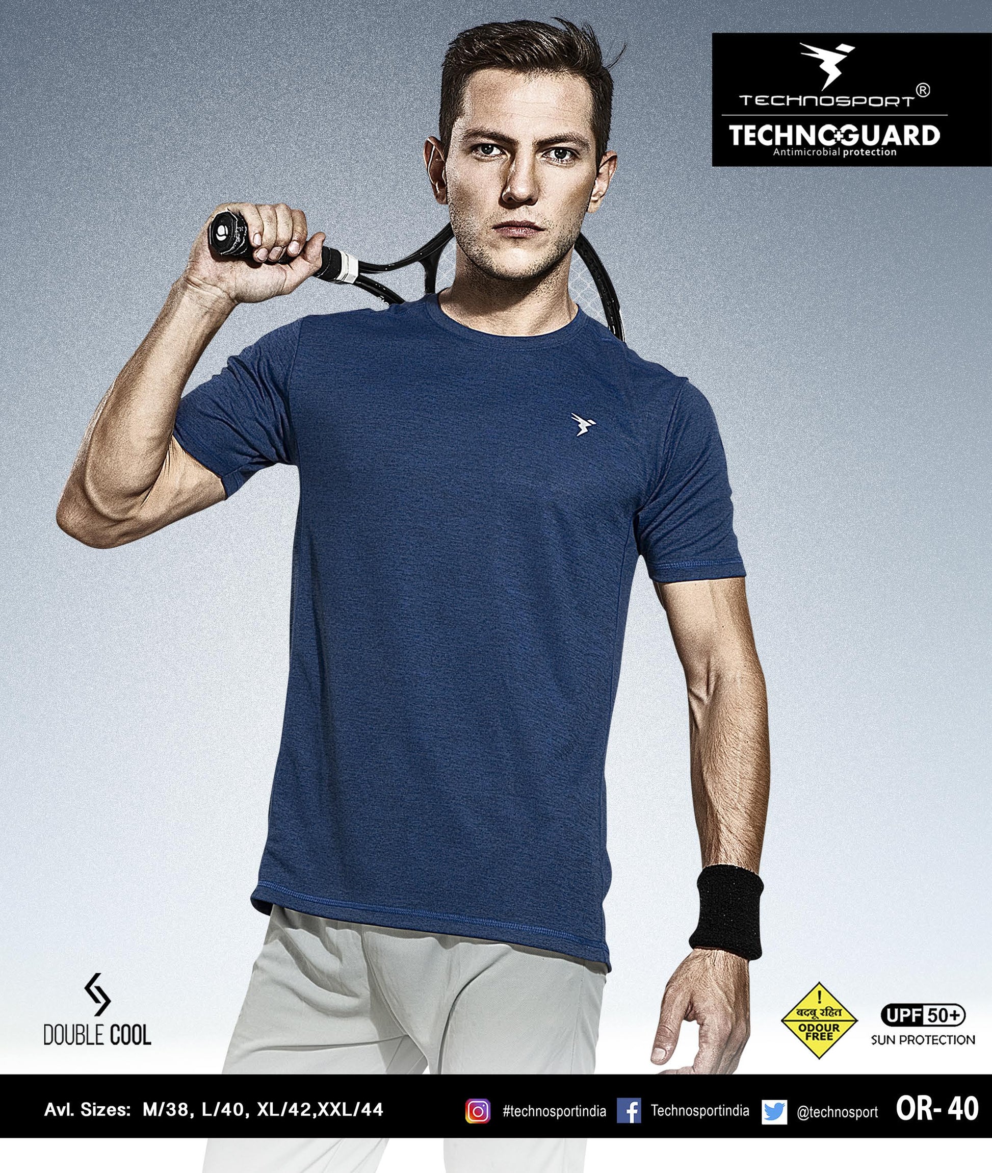 TechnoSport Crew Neck Half Sleeve Dry Fit T Shirt for Men OR-40 (Navy Blue)