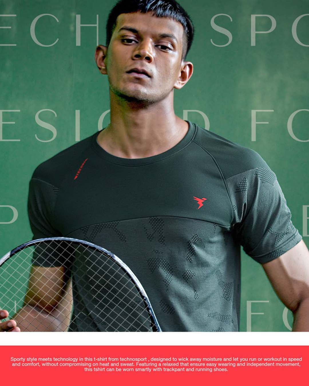 TechnoSport Crew Neck Half Sleeve Dry Fit T Shirt for Men OR-50 (Olive Green)