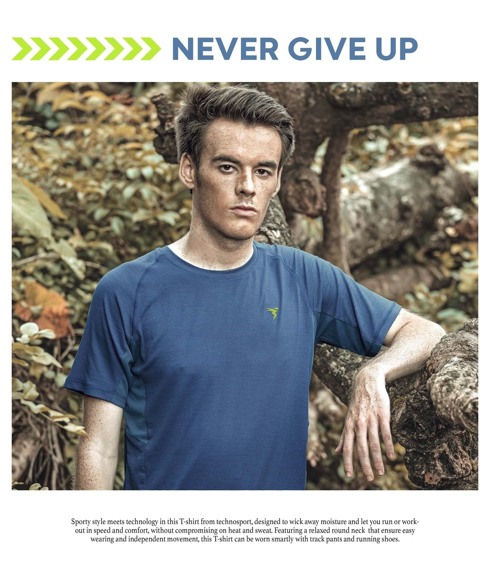 TechnoSport Crew Neck Half Sleeve Dry Fit T Shirt for Men P 485 Peacock Blue