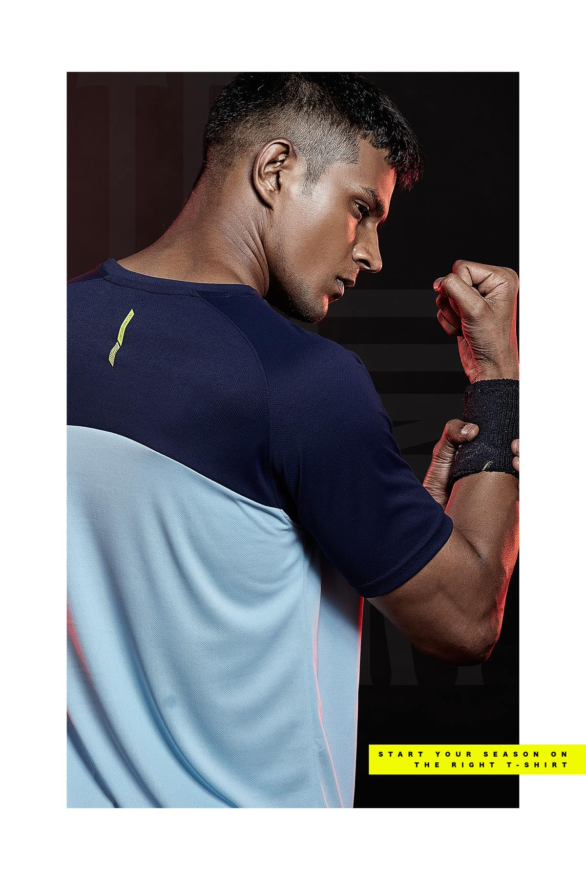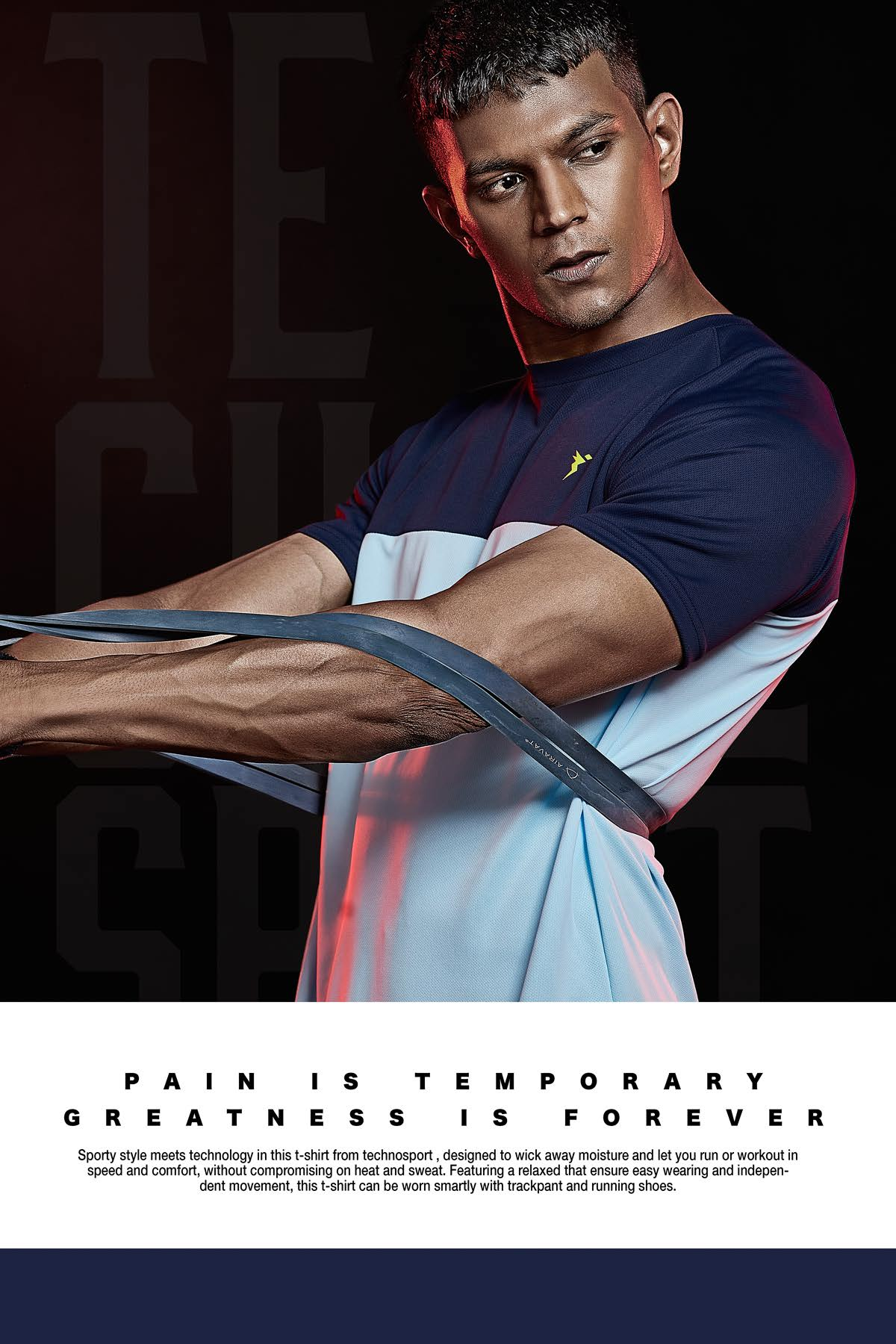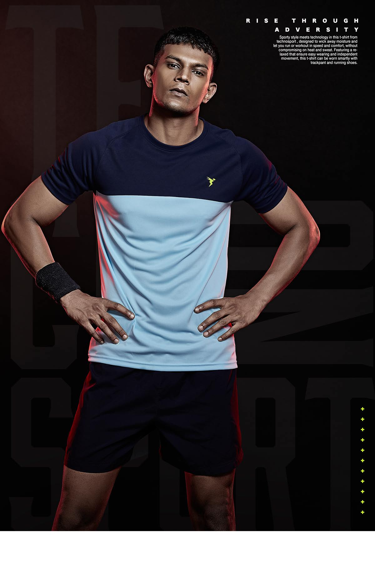 TechnoSport Crew Neck Half Sleeve Dry Fit T-Shirt for Men P 536 Sky Blue Navy Blue