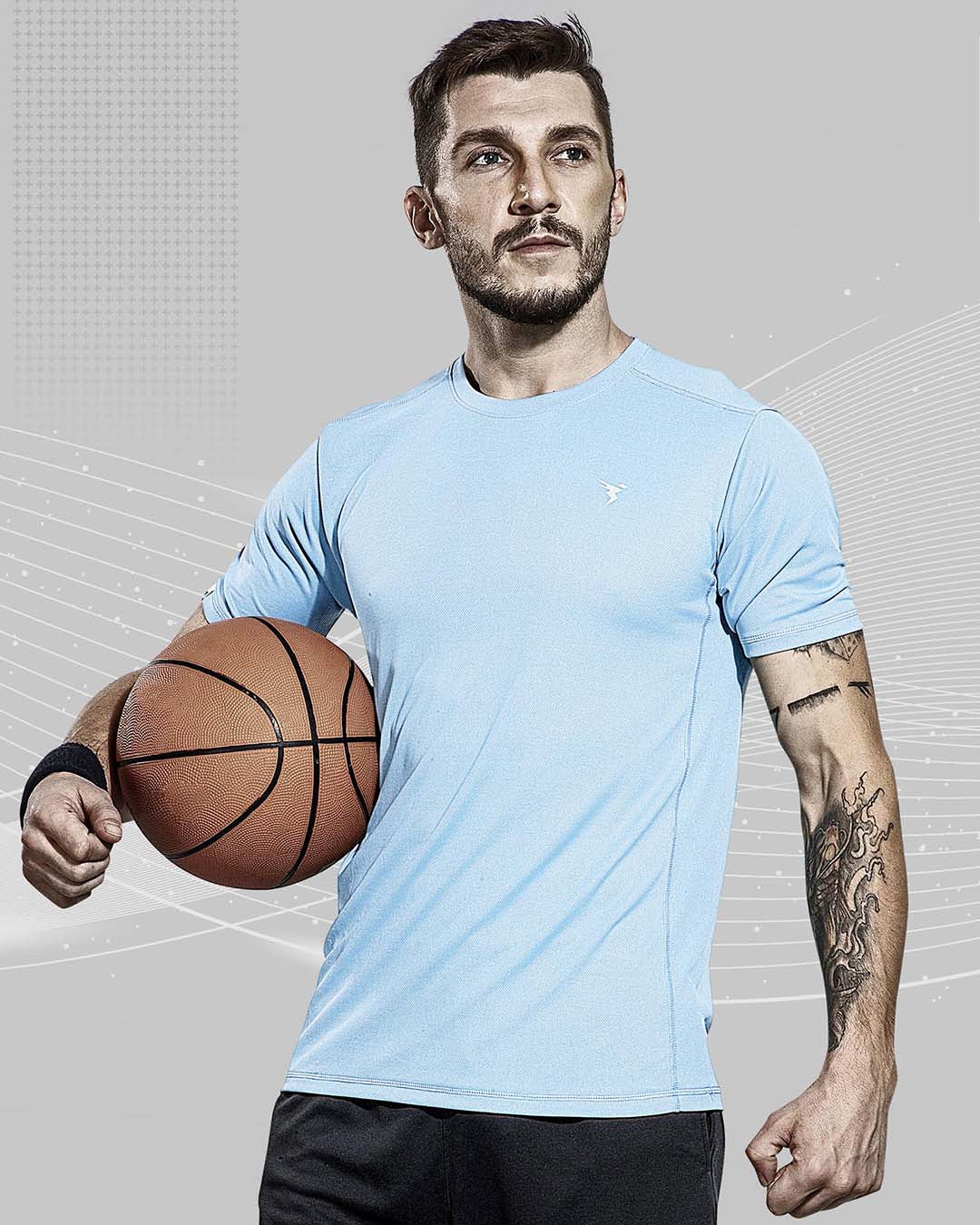 TechnoSport Crew Neck Half Sleeve Dry Fit T Shirt for Men OR-10 (Sky Blue)