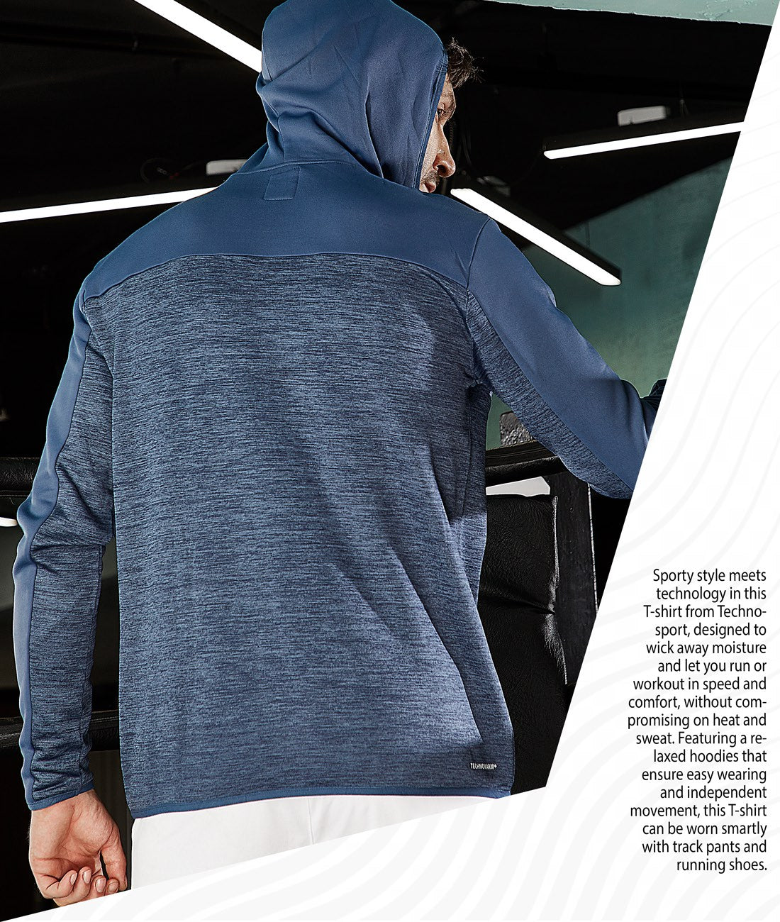 TechnoSport Full Sleeve Dry Fit Hoodie Jacket for Men PL-65 (Spanish Blue)