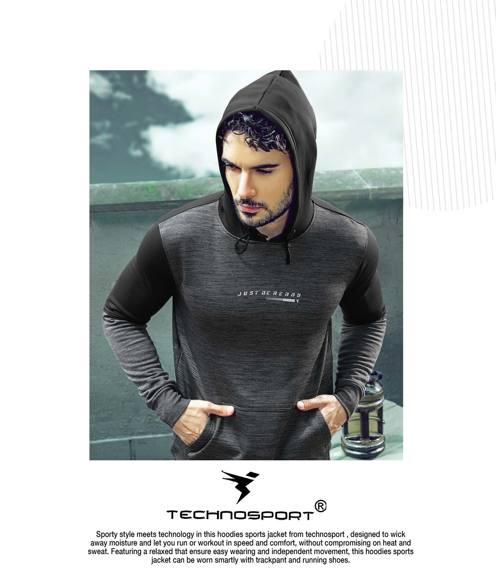 Technosport Full Sleeve Dry Fit Hoodie Jacket for Men PL-72 (Dark Grey)