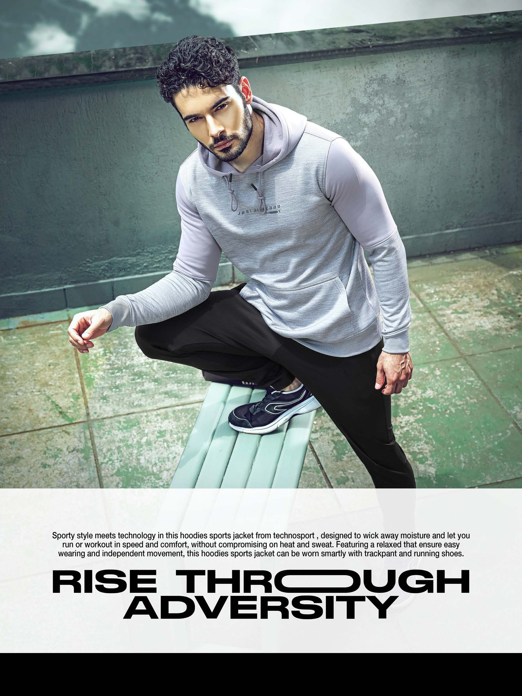 Technosport Full Sleeve Dry Fit Hoodie Jacket for Men PL-72 (Silver Grey)