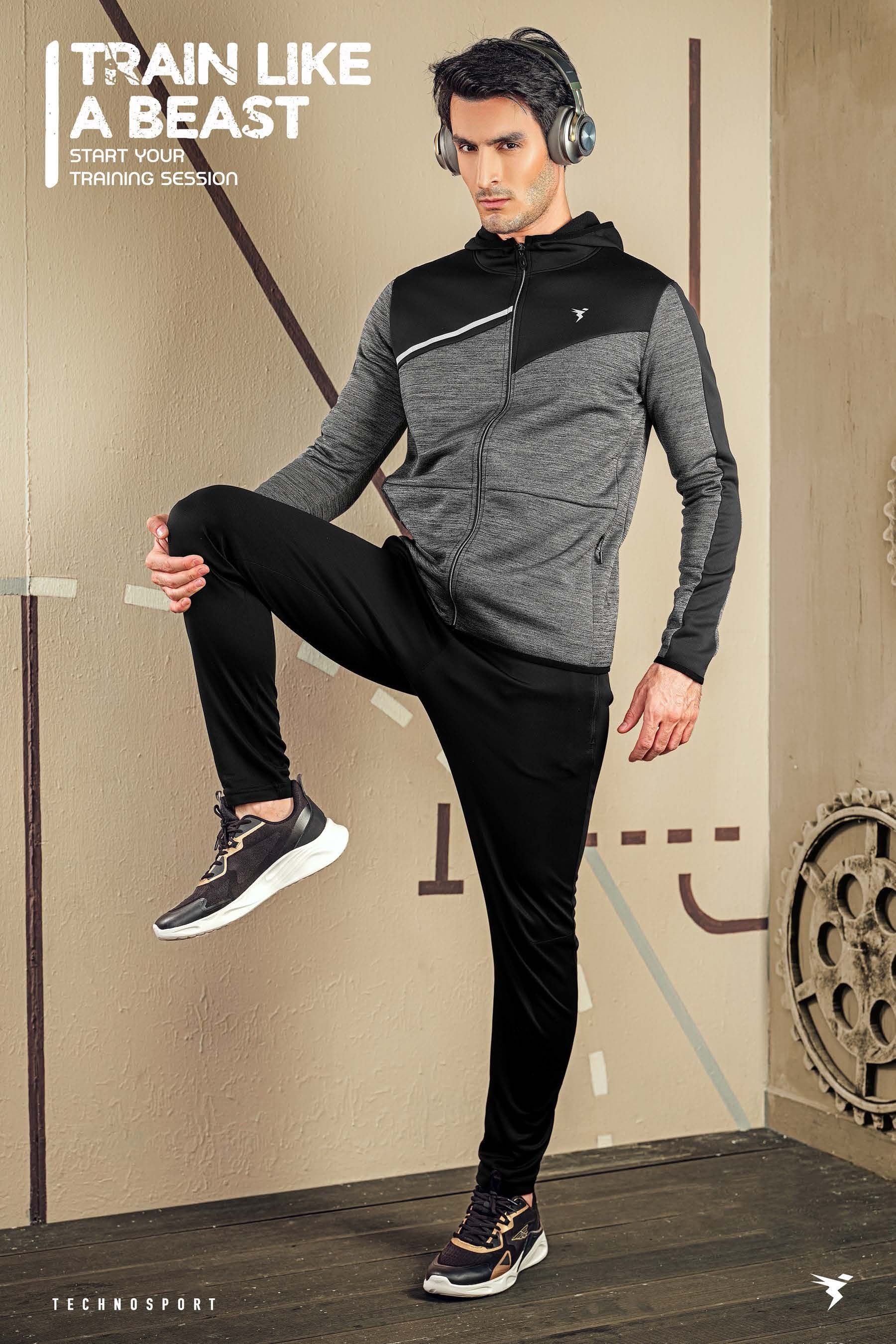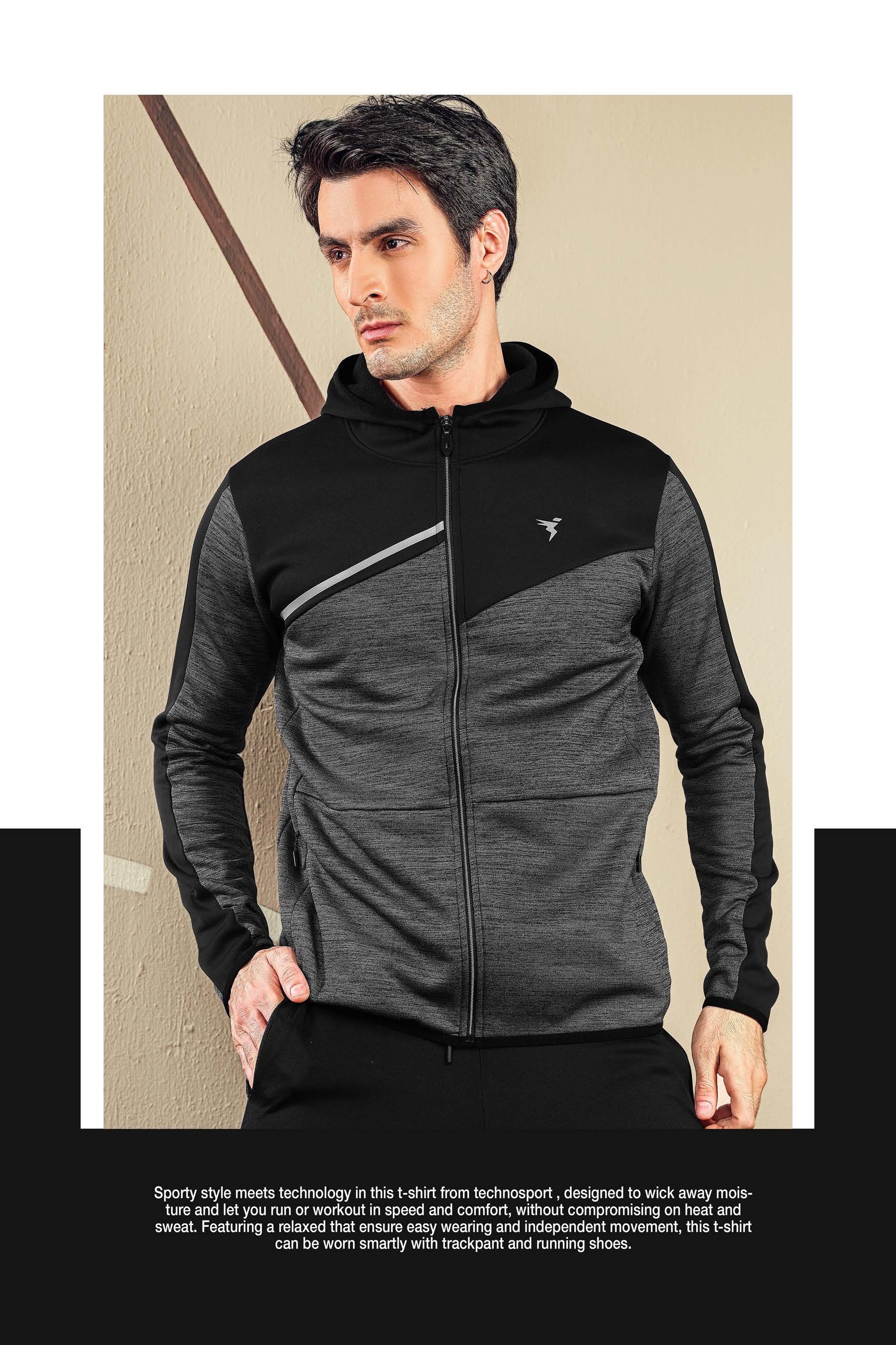 Technosport Full Sleeve Dry Fit Melange Hoodie Jacket for Men PL-74 (Dark Grey)