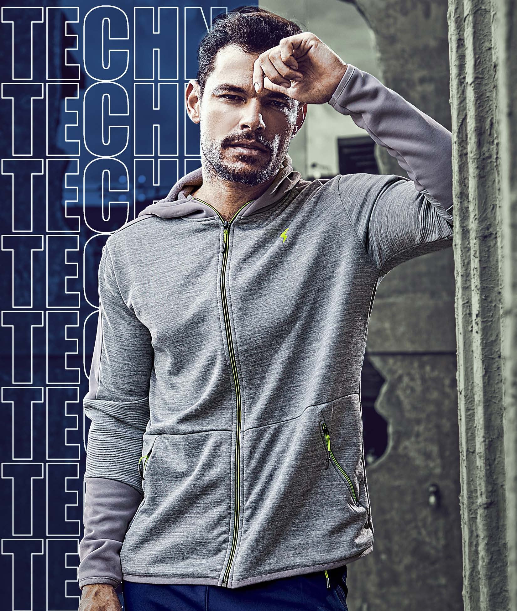 Sporty style meets technology in this jacket from technosport, designed to wick away moisture and let you run or work out in speed and comfort, without compromising on heat and sweat. Featuring a relaxed that ensures easy wearing and independent movement, this jacket can be worn smartly with trackpant and running shoes.