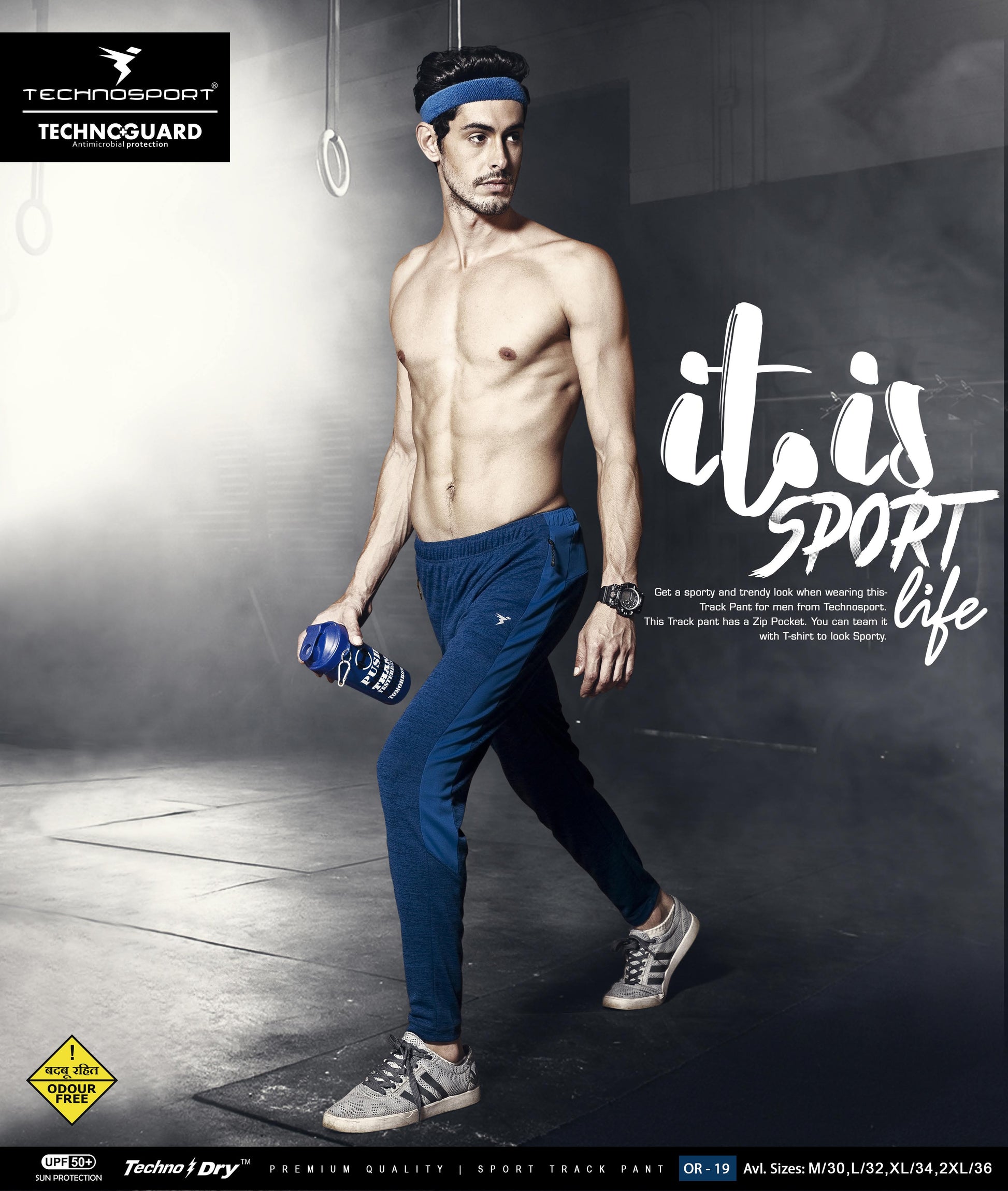 TechnoSport Men's Dry-Fit Solid Track Pants OR-19 (Peacock Blue)