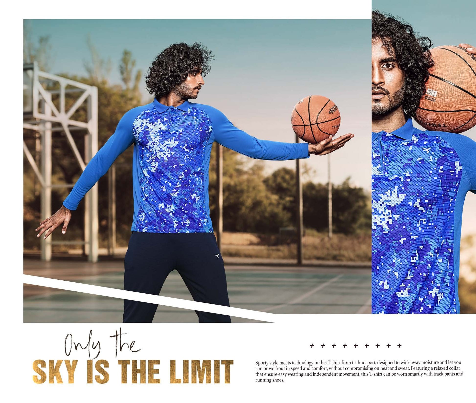 TechnoSport Polo Neck Full Sleeve Sublimation Dry Fit T-Shirt for Men P-487 (Royal Blue)