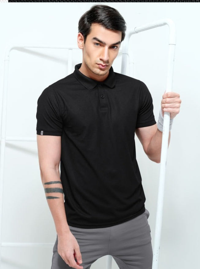 TechnoSport Polo Neck Half Sleeve Dry Fit T Shirt for Men OR-51 (Black)