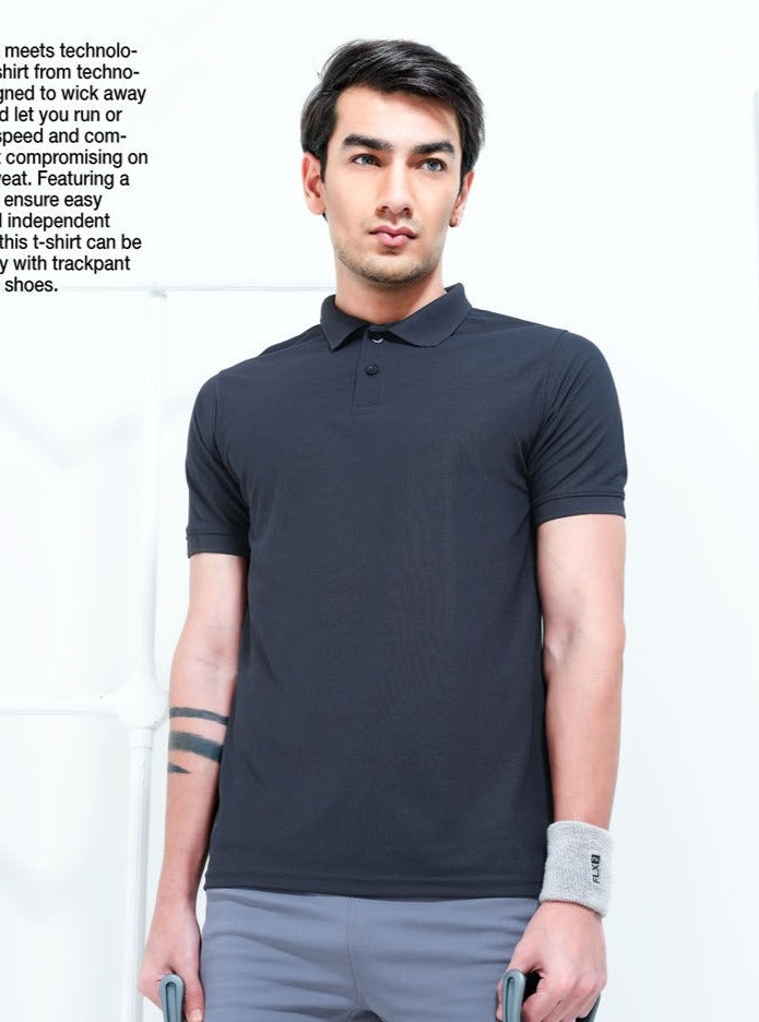 TechnoSport Polo Neck Half Sleeve Dry Fit T Shirt for Men OR-51 (Dark Grey)