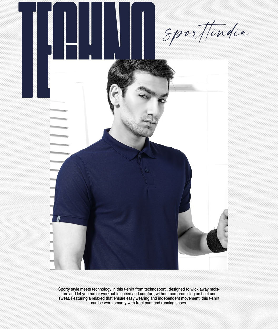 TechnoSport Polo Neck Half Sleeve Dry Fit T Shirt for Men OR-51 (Navy Blue)
