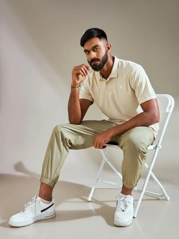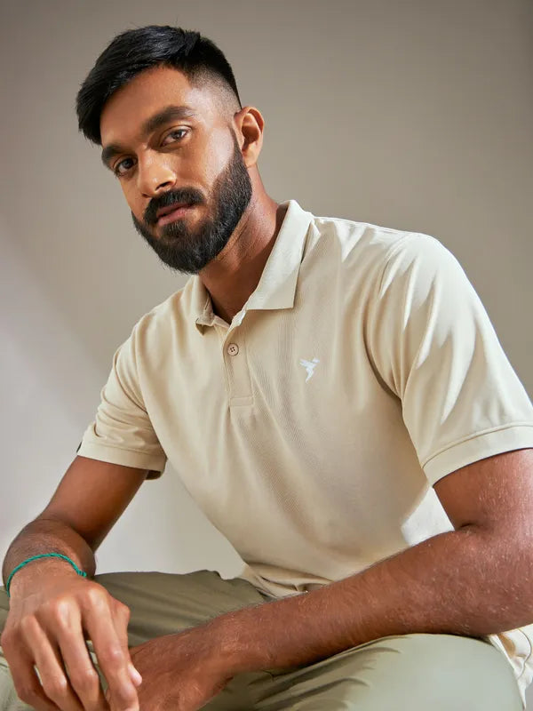 TechnoSport Polo Neck Half Sleeve Dry Fit T Shirt for Men OR-11 (Oatmeal)