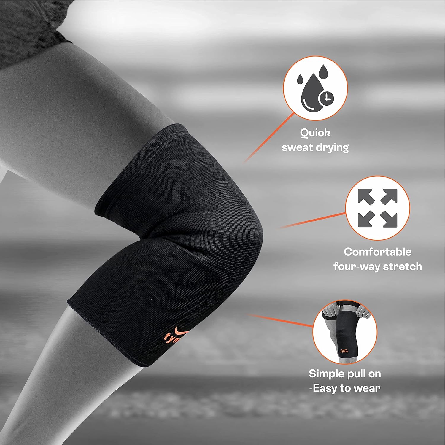 Introducing the TYNOR Knee Cap Air - your ultimate protection for sports-related injuries. Made of hypoallergenic nylon, it offers four-way stretchability for uniform compression and a better grip during sports. Its bilayered design provides maximum protection and maximum style. Play on with confidence!