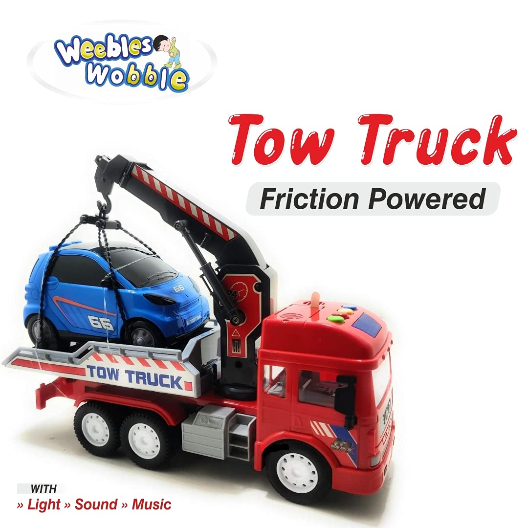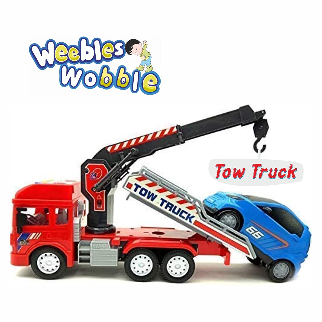 Weebles Wobble Push and Go Friction Powered Tow Truck Toy with Car
